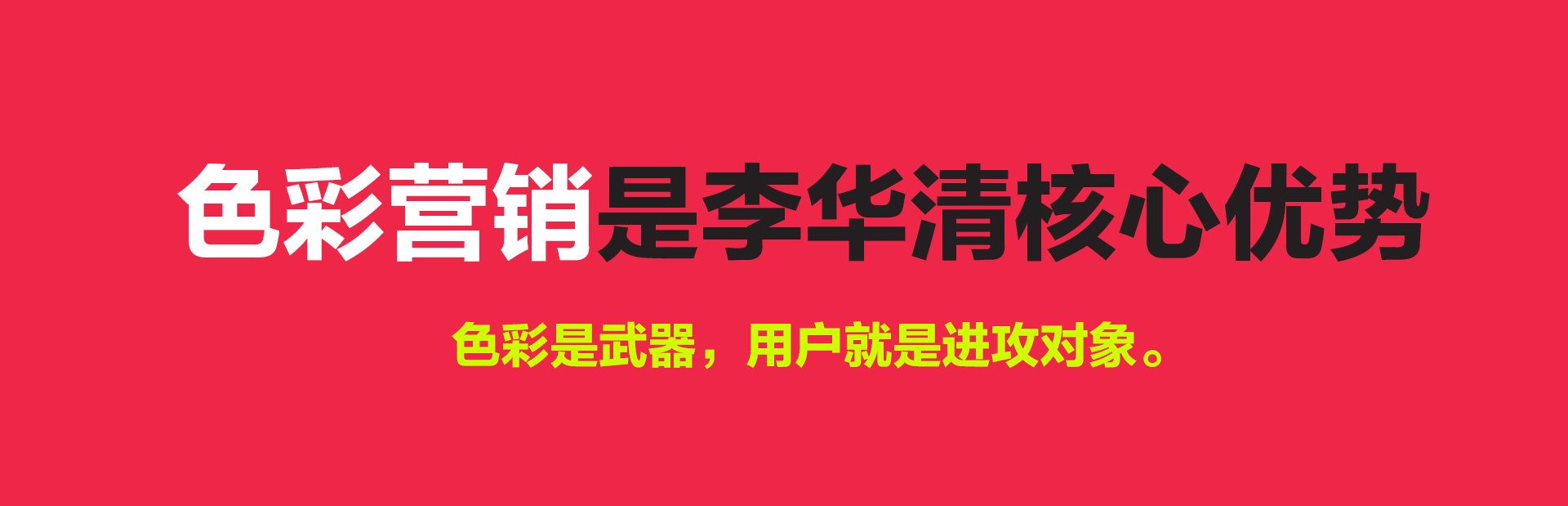 “色彩營銷”是李華清團隊經過十幾年的商業實踐,沉淀,研究,而獨立研發的品牌競爭方法論。我們以《色彩心理學》《購物行為學》《消費者行為學》等為指導依據,重新制定了【戰略色彩資源配置】與【戰略色彩營銷方法】從而有效地為品牌和產品構建順應人性、心理及情緒偏好的戰略色彩體系。