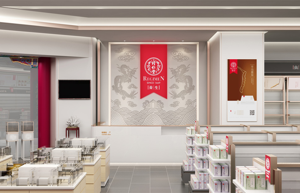 隨著更多年輕人對養生的意識越來越強,必須要適應他們的消費習慣,而門店終端形象直接就影響著商品的成交率。于是為了迎合當下時代的發展,提升年輕市場的占比,我們在升級了養生專柜后,對同仁堂參茸蟲草專賣店也進行了重新開發升級。